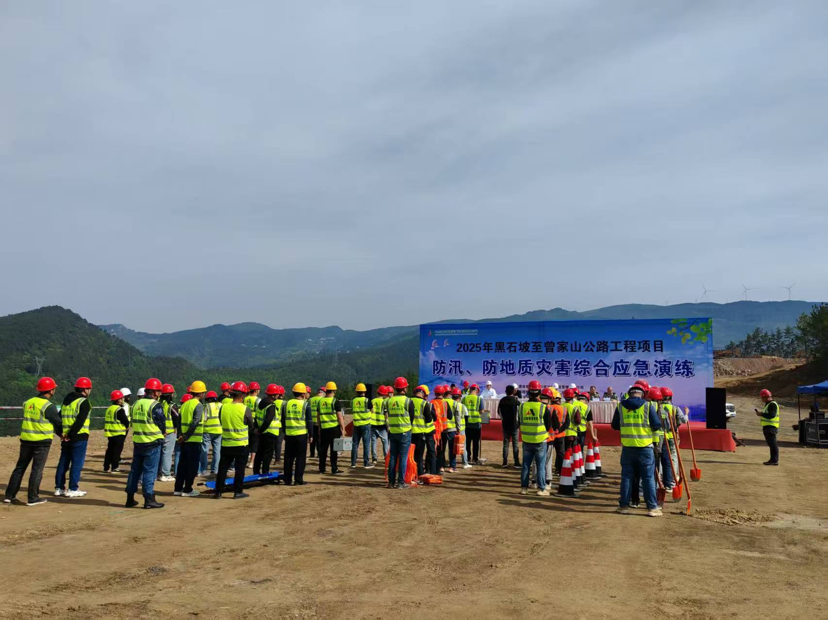 黑石坡至曾家山公路工程項(xiàng)目開展防汛、防地質(zhì)災(zāi)害綜合應(yīng)急演練,多維提升項(xiàng)目部應(yīng)對(duì)突發(fā)事件的協(xié)調(diào)指揮、現(xiàn)場處置等能力。